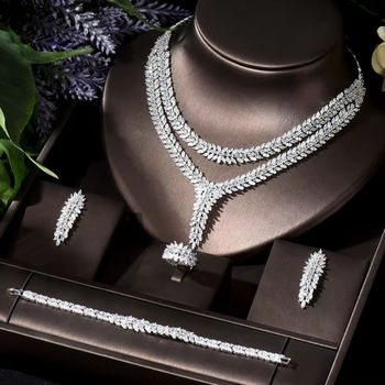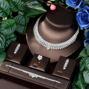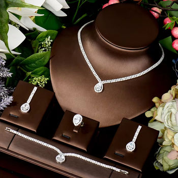 قلادة زركونيا أنيقة 4 قطرة ماء من HIBRIDE للنساء طقم مجوهرات هندية لحفلات الزفاف في دبي