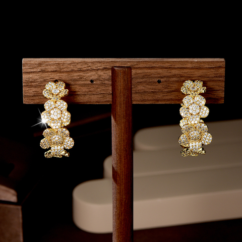Eleganti Orecchini a Cerchio da Sposa per Donne con Micro CZ a Forma di Fiore, Colore Oro, Accessori in Ottone, Brincos Feminino, Vendita all'Ingrosso E82